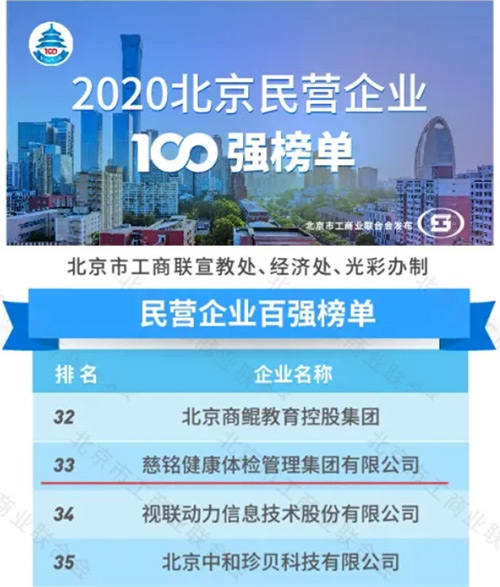 10月10日,由北京市工商聯(lián)與北京經(jīng)濟(jì)技術(shù)開(kāi)發(fā)區(qū)管委會(huì)聯(lián)合舉辦的“2020北京民營(yíng)企業(yè)百?gòu)?qiáng)發(fā)布會(huì)”在京順利召開(kāi),會(huì)上發(fā)布了2020北京民營(yíng)企業(yè)百?gòu)?qiáng)調(diào)研分析數(shù)據(jù)、榜單并授牌。慈銘體檢憑借積極主動(dòng)履行企業(yè)社會(huì)責(zé)任、熱心參與公益...